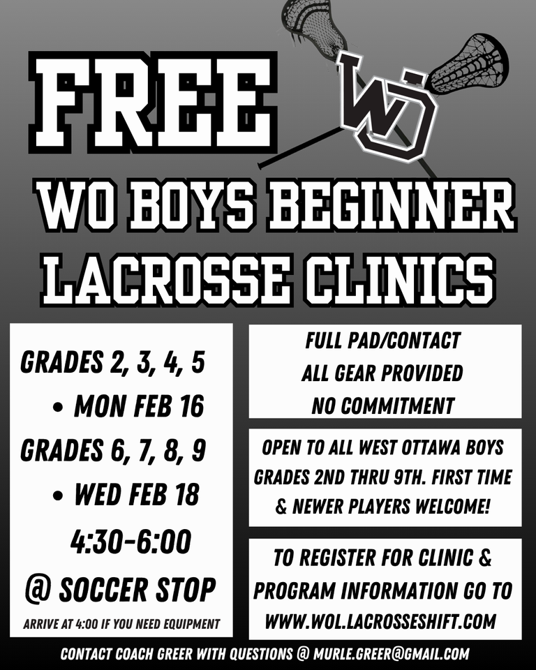 West Ottawa Boys Youth Lacrosse plays in the Lakeshore League against other West Michigan/Lakeshore programs.